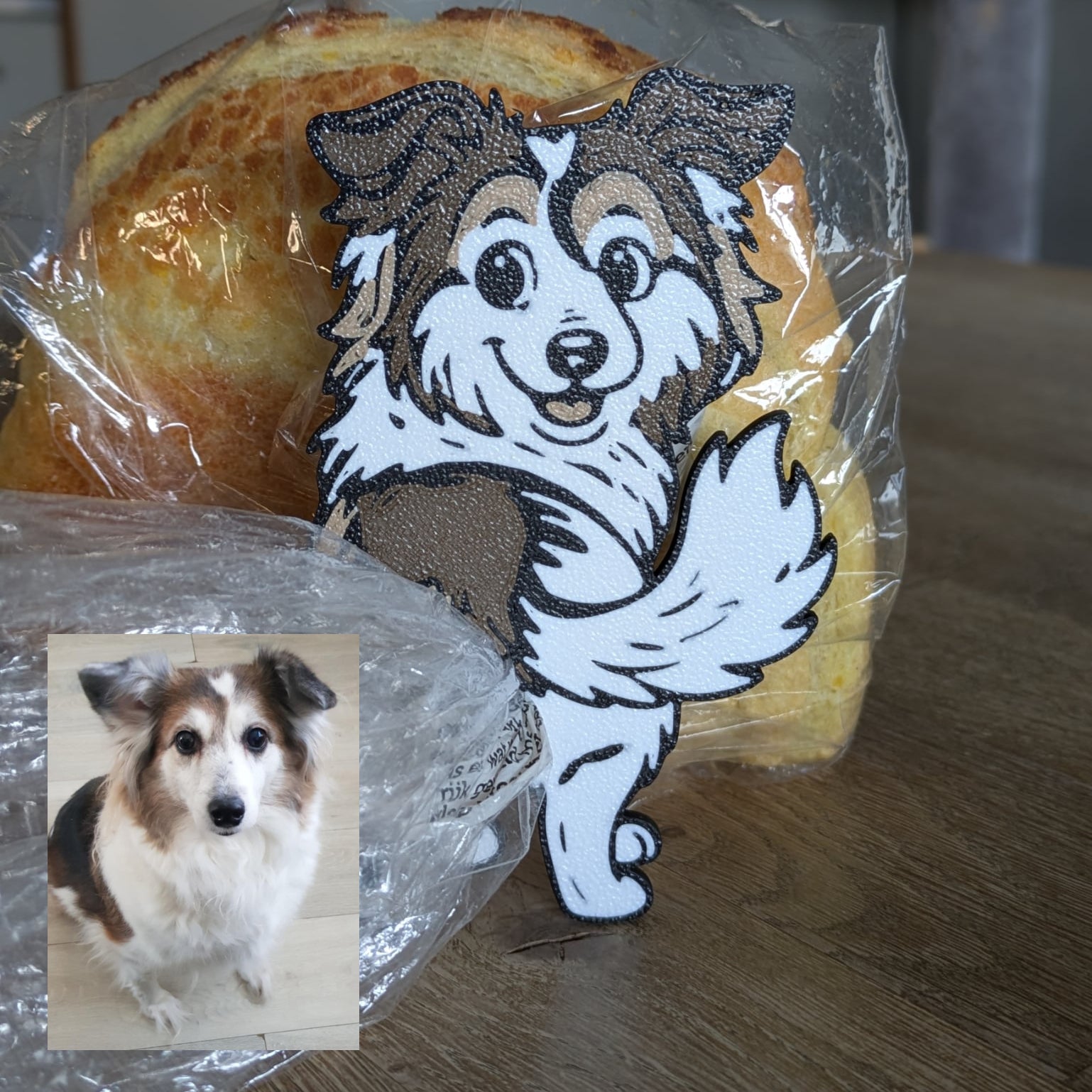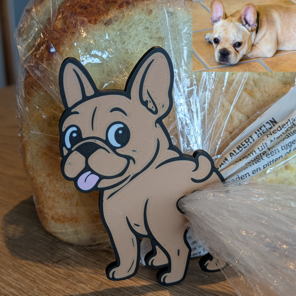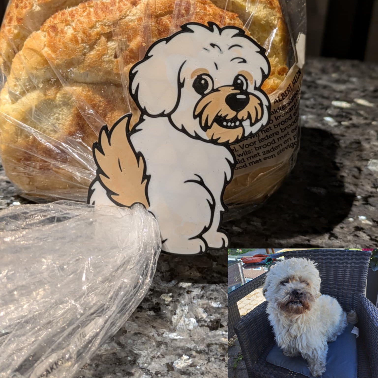 Broodzaksluiting met een grappige afbeelding van je eigen viervoeter. Gemaakt van duurzaam bio plastic.